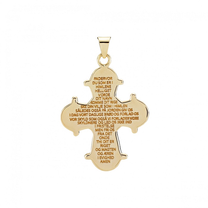 Smukt dagmarkors i 8 kt. guld med fadervor.