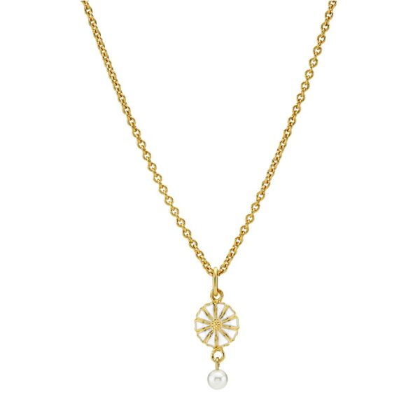 Smuk Marguerit halskæde med perle i forgyldt sølv fra Lund Copenhagen