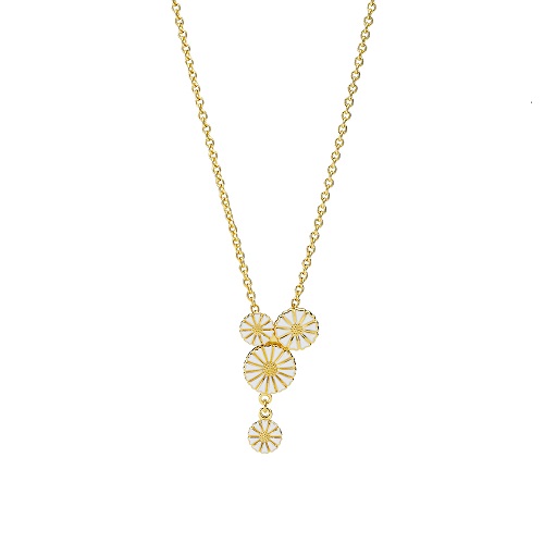 Lund Marguerit halskæde 902007-M er et ikonisk collier, der forener klassisk dansk smykkekunst med feminin lethed. De fire margueritter i hvid emalje og forgyldt sølv danner en elegant buket, som tilfører dit look varme, lys og raffinement. Et smykke, der aldrig går af mode – og som føles lige så rigtigt til hverdag som til fest.
