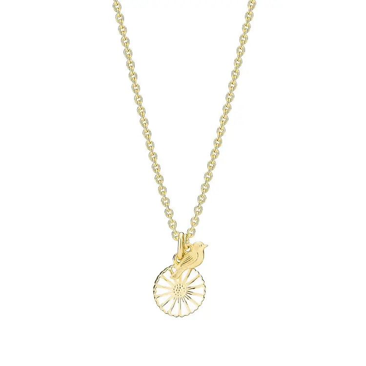 Smuk halskæde i sølv belagt med 24 karat guld og marguerit på 11 mm.