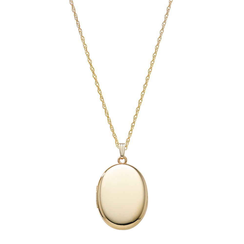Smuk og enkel oval medaljon med påvalset 14 karat guld. Medaljonen er blank på både forsiden og bagsiden. Der er plads til to billeder inden i. Vedhænget måler 29 mm i højden og 22 mm i bredden, og der medfølger en 50 cm lang kæde, hvor der l