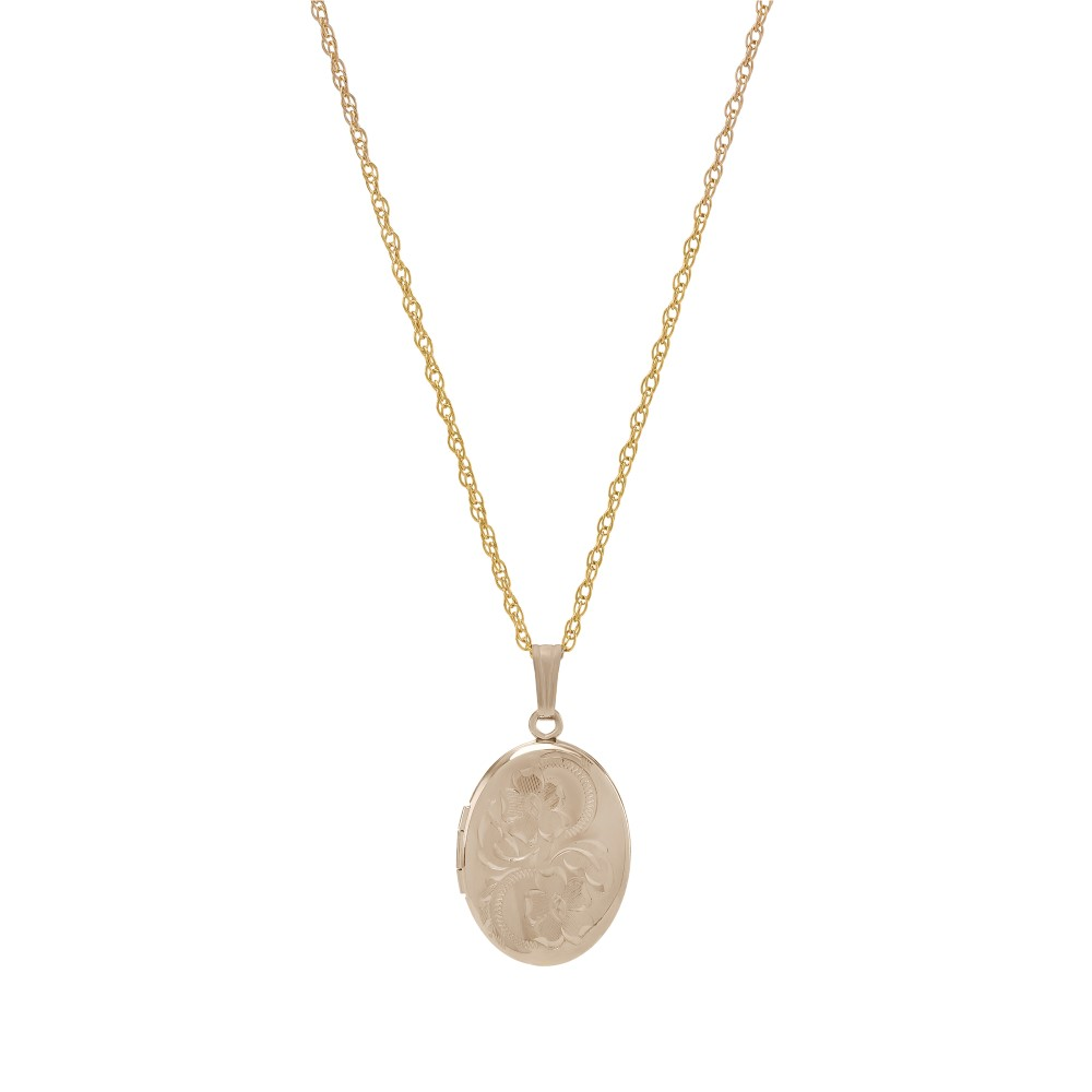 Lad et følsomt øjeblik leve for evigt med denne romantiske ovale medaljon i påvalset 14 kt guld. Det fine ciselerede blomstermotiv signalerer kærlighed og nostalgi, mens den blanke bagside inviterer til personlig gravering. En tidløs gave, der bæres tæt på hjertet – hver dag.