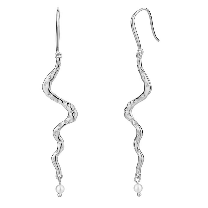 Nava Copenhagen Alana øreringe i sølv er skabt til dig, der vil mærkes – uden at råbe. De lange, bølgende former fanger lyset og skaber en yndefuld bevægelse, der fremhæver dit ansigt. Den lille ægte ferskvandsperle tilfører et blødt, romantisk fokuspunkt, som gør udtrykket både feminint og eksklusivt.