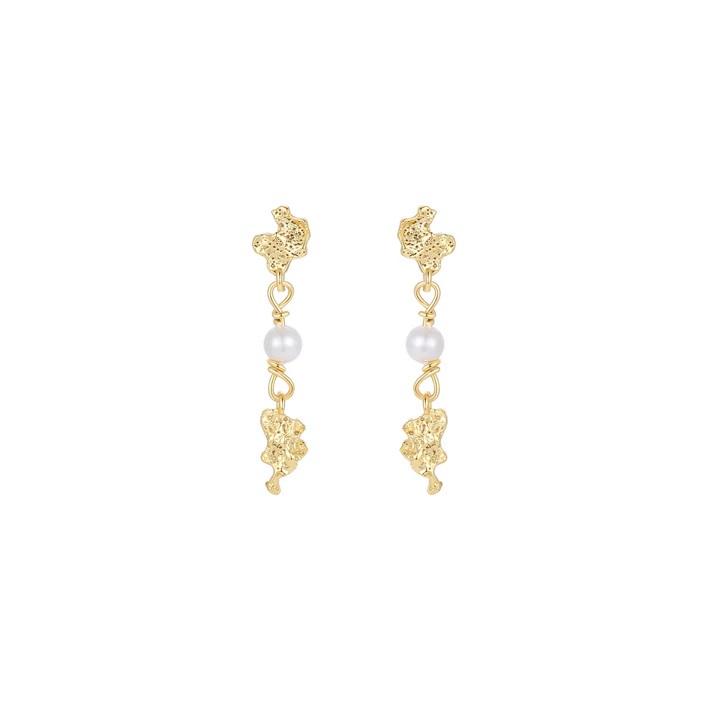 Kaa øreringene er udført i 18 kt. forgyldt sterling sølv og kombinerer dansk minimalisme med rå, organiske former. De er lette at style, behagelige at bære og designet til at blive brugt igen og igen.