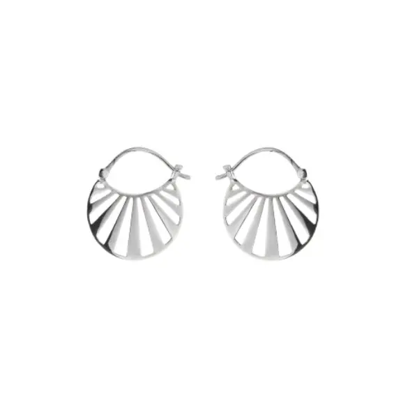 Pernille Corydon Small Misty Light Øreringe (E-613-S) er skabt til dig, der elsker enkel elegance med en stærk fortælling. Inspireret af morgensolens stråler, der bryder gennem tågen, forener de et moderne, grafisk udtryk med en blød, feminin glød. De små creoler på 18 mm smyger sig let om øret og giver et raffineret touch – uanset om du styler dem til hverdag eller fest.