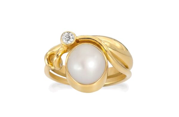 Rabinovich Winding White ring 79420301 forener romantik og moderne elegance i et smykke, der straks fanger blikket. Det snoede design i forgyldt sterlingsølv 925 smyger sig blødt om fingeren og skaber en naturlig ramme om den hvide ferskvandsperle. Resultatet er en feminin ring, der føles let, luksuriøs og nem at forelske sig i.