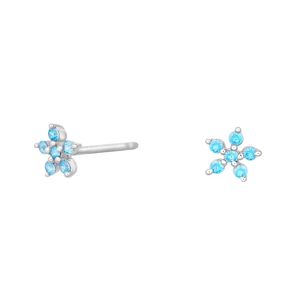 Rhd. Sølv ørestikker blomst med blå cz