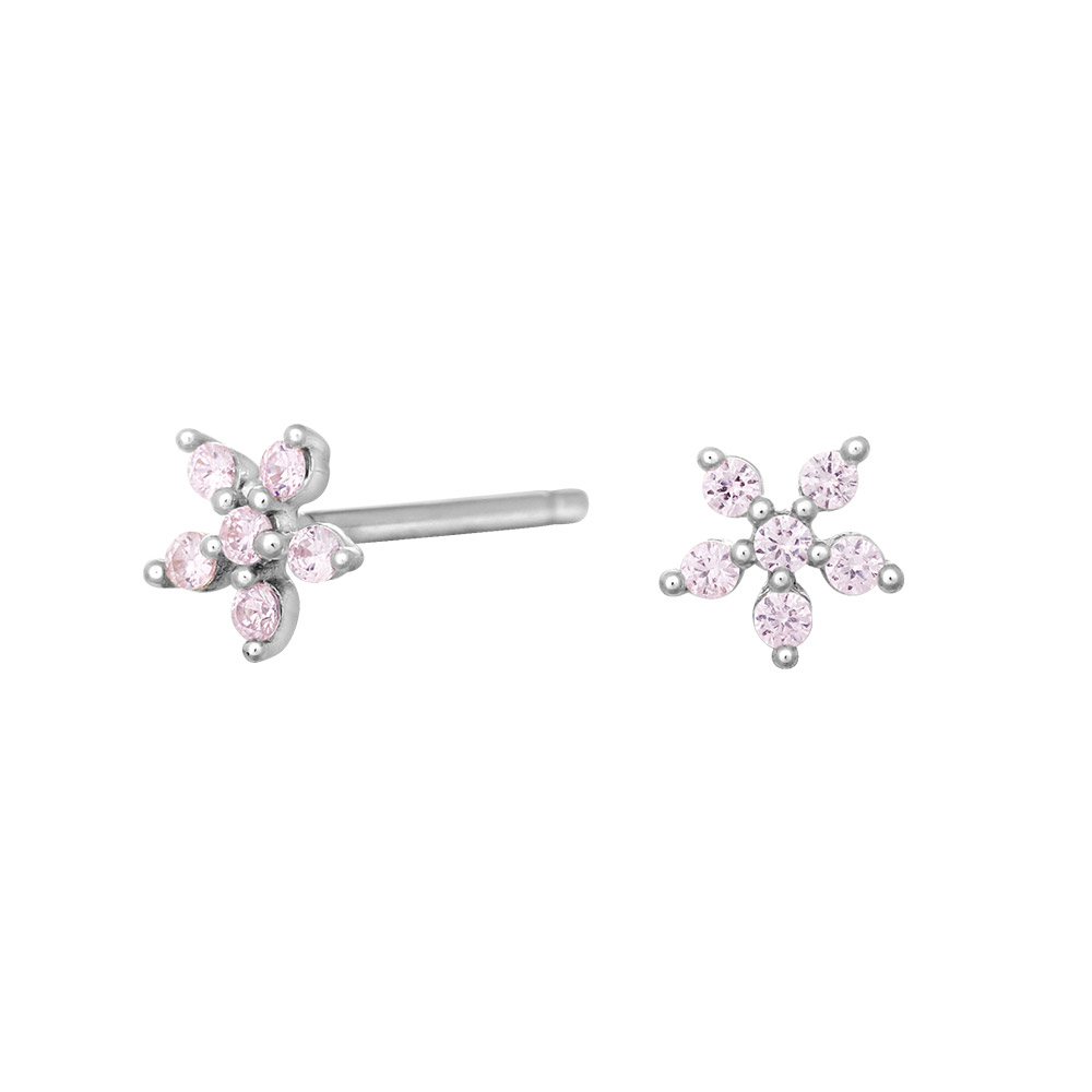 Rhd. Sølv ørestikker blomst med pink cz