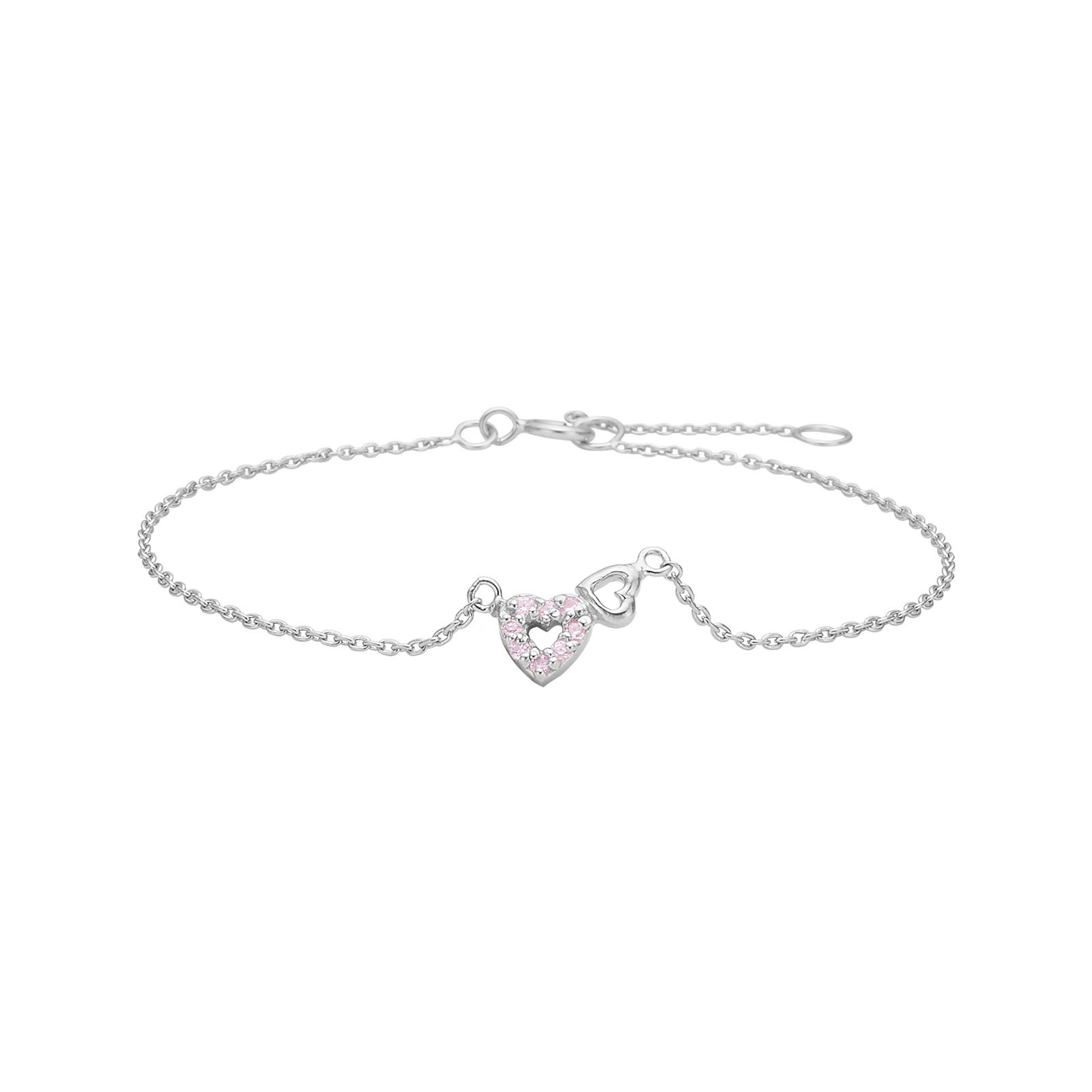 Rhd. sølvarmbånd hjerte m. lyserød cz