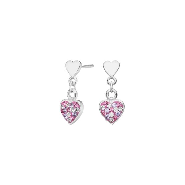Rhd. sølvørehængere hjerte m. rosa mix cz