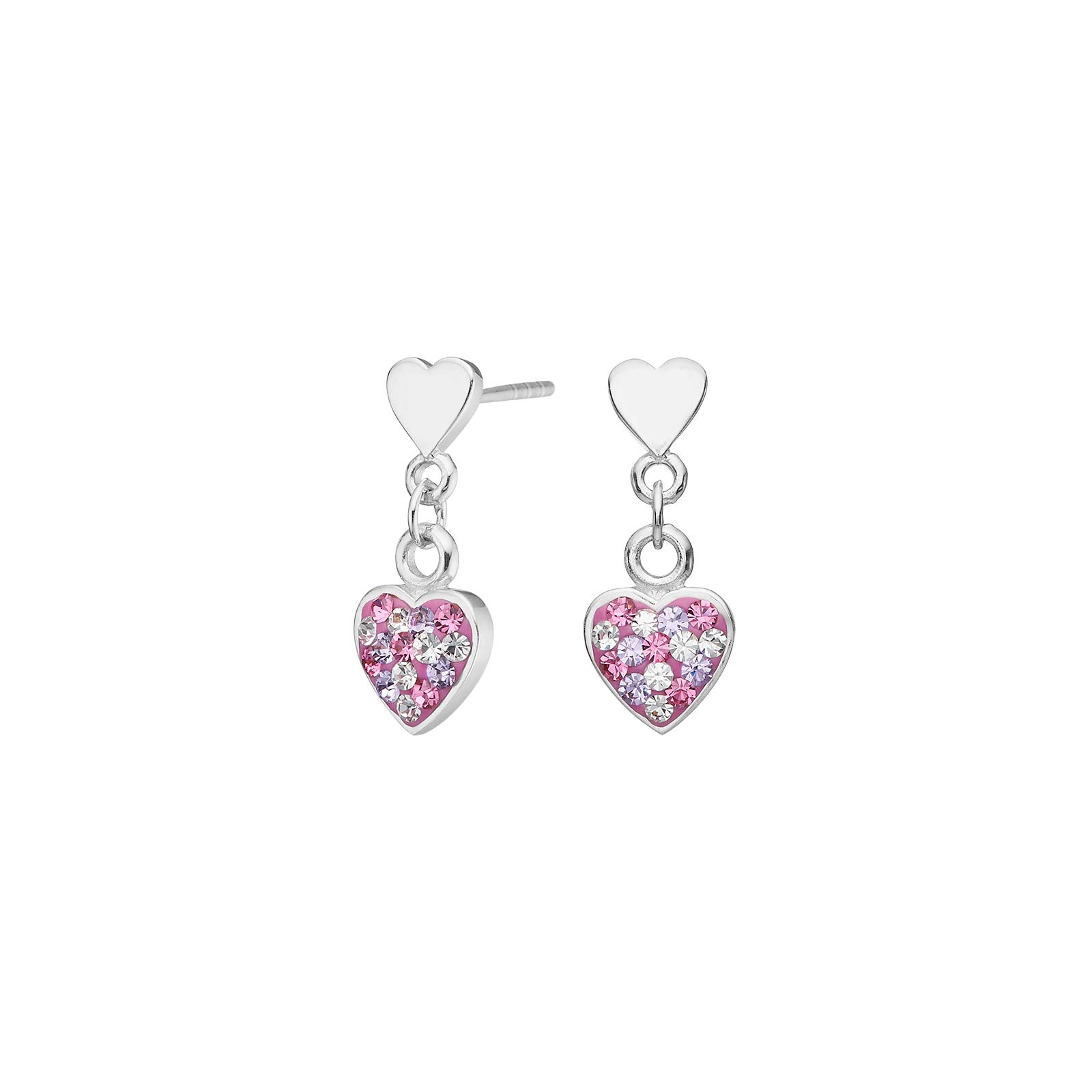 Rhd. sølvørehængere hjerte m. rosa mix cz antal