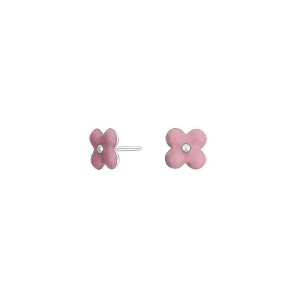Rhd. sølvørestikker blomst m/lyserød emalje