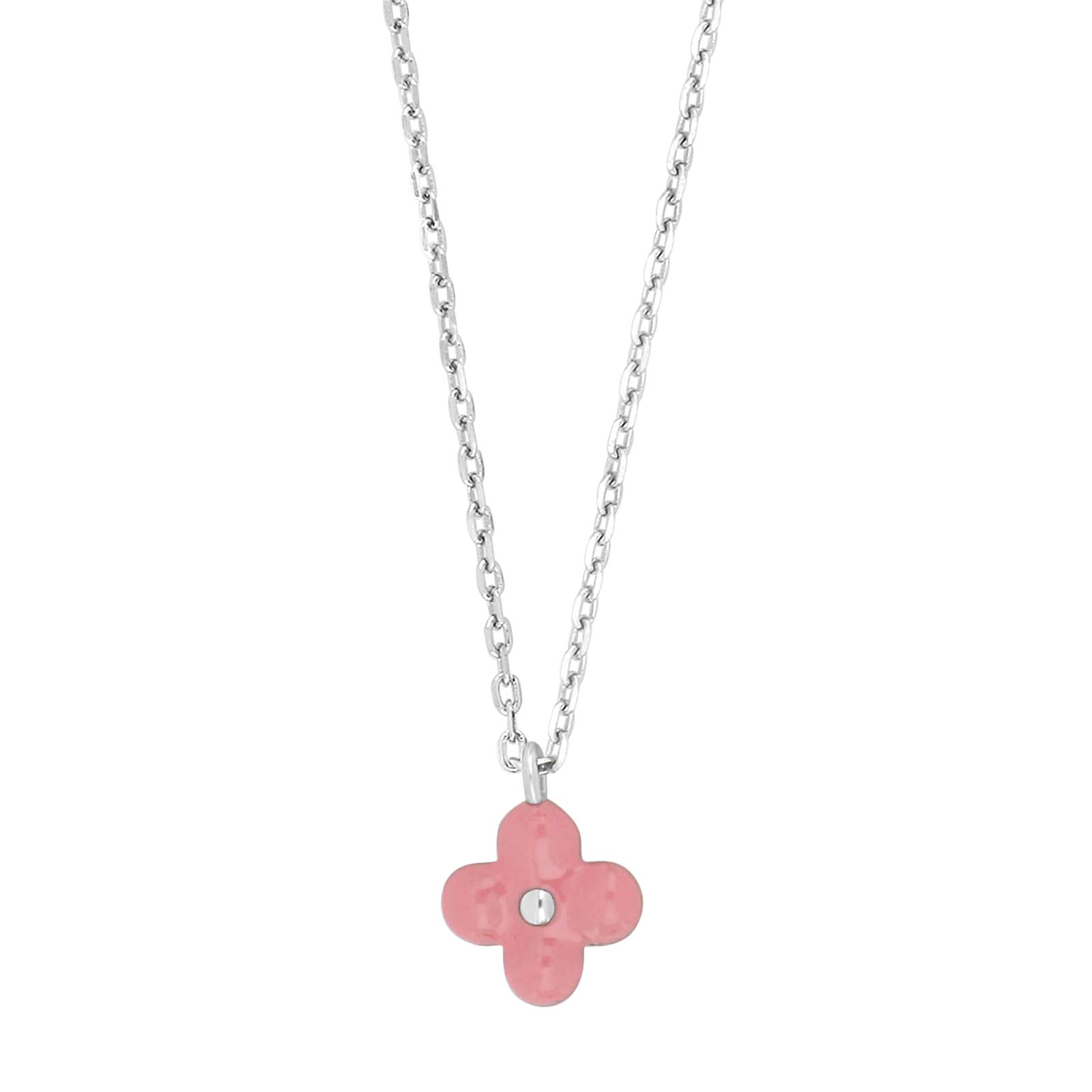/ Rhd. sølvvedhæng blomst m/lyserød emalje + kæde