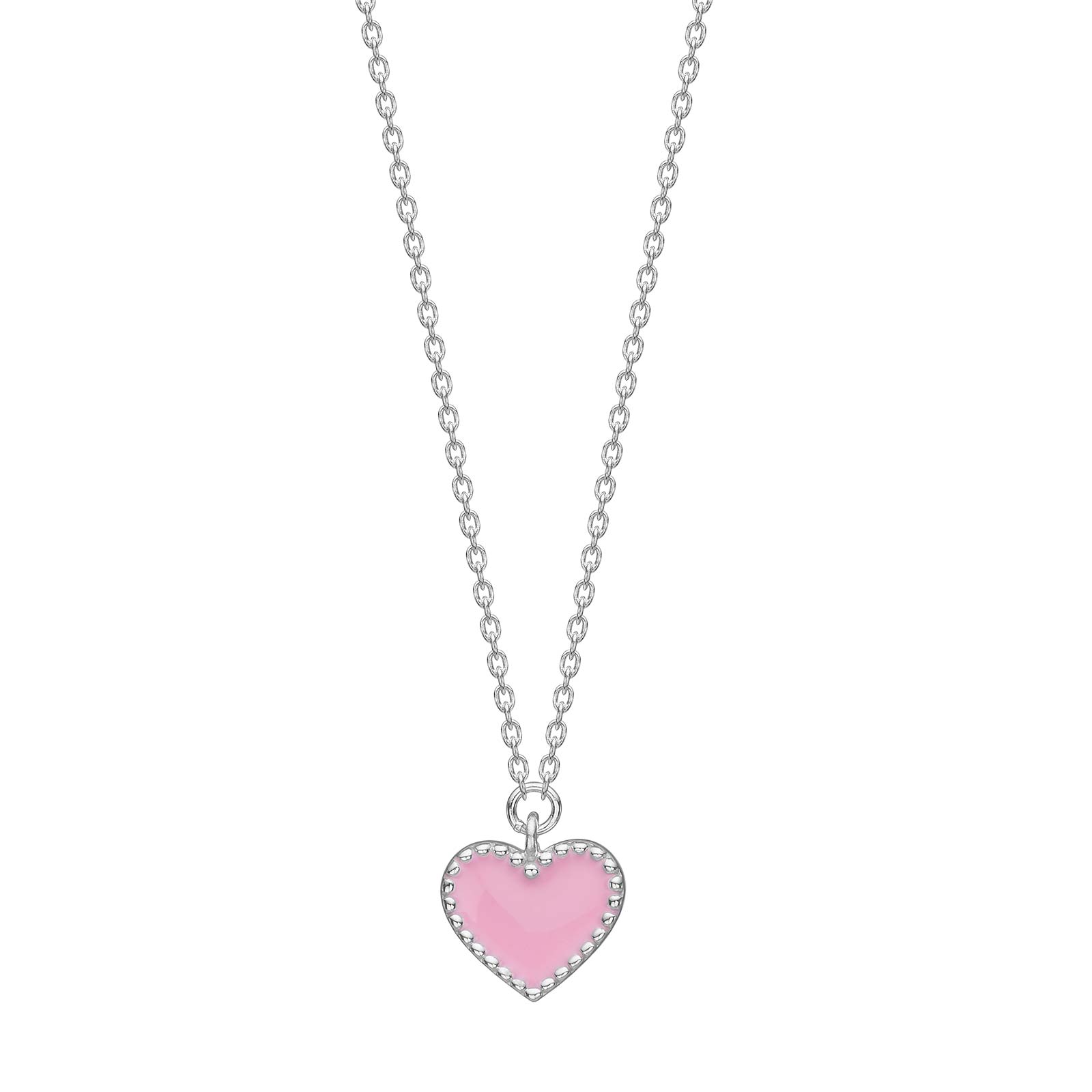 Rhd. sølvvedhæng hjerte m. lyserød emalje
