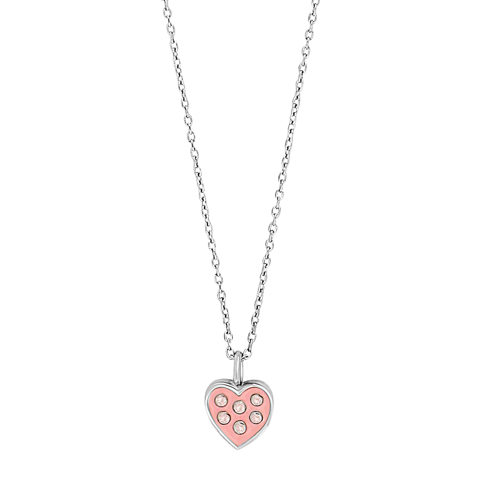 Rhd. sølvvedhæng hjerte m. lyserød emalje