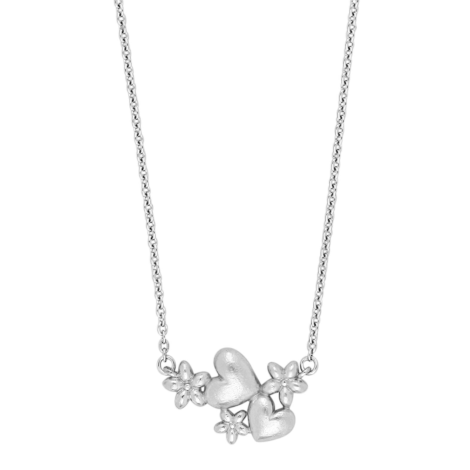 Rhd. sølvvedhæng hjerter/blomster m. kæde