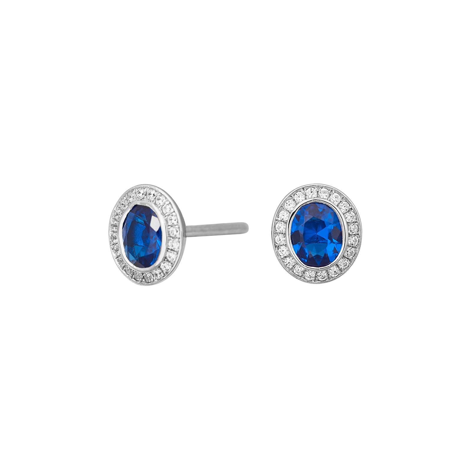 Rhod. Sølv roset ørestik m. synt. Safir og cz