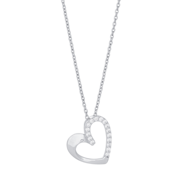Rhod. sølv vedhæng hjerte m. cz 15mm inkl. kæde