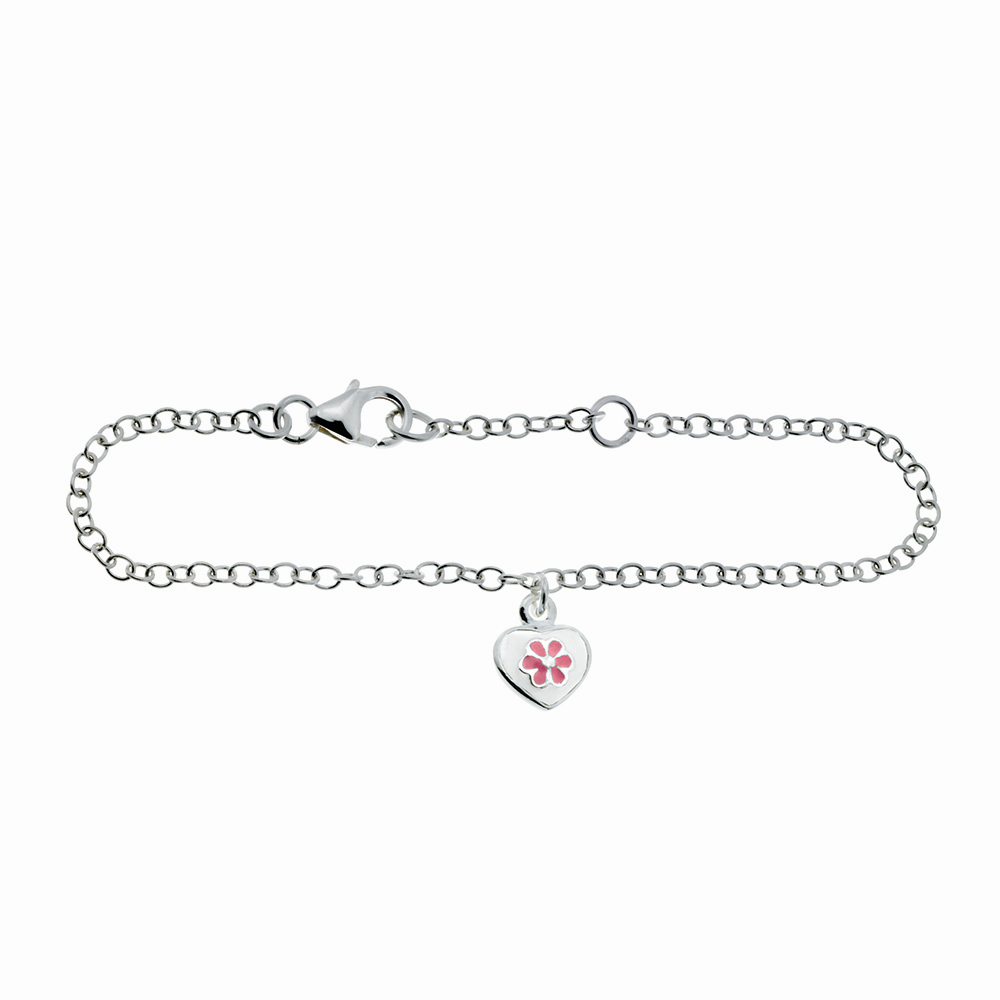 Rhod. sølvarmbånd hjerte m/blomst og emalje