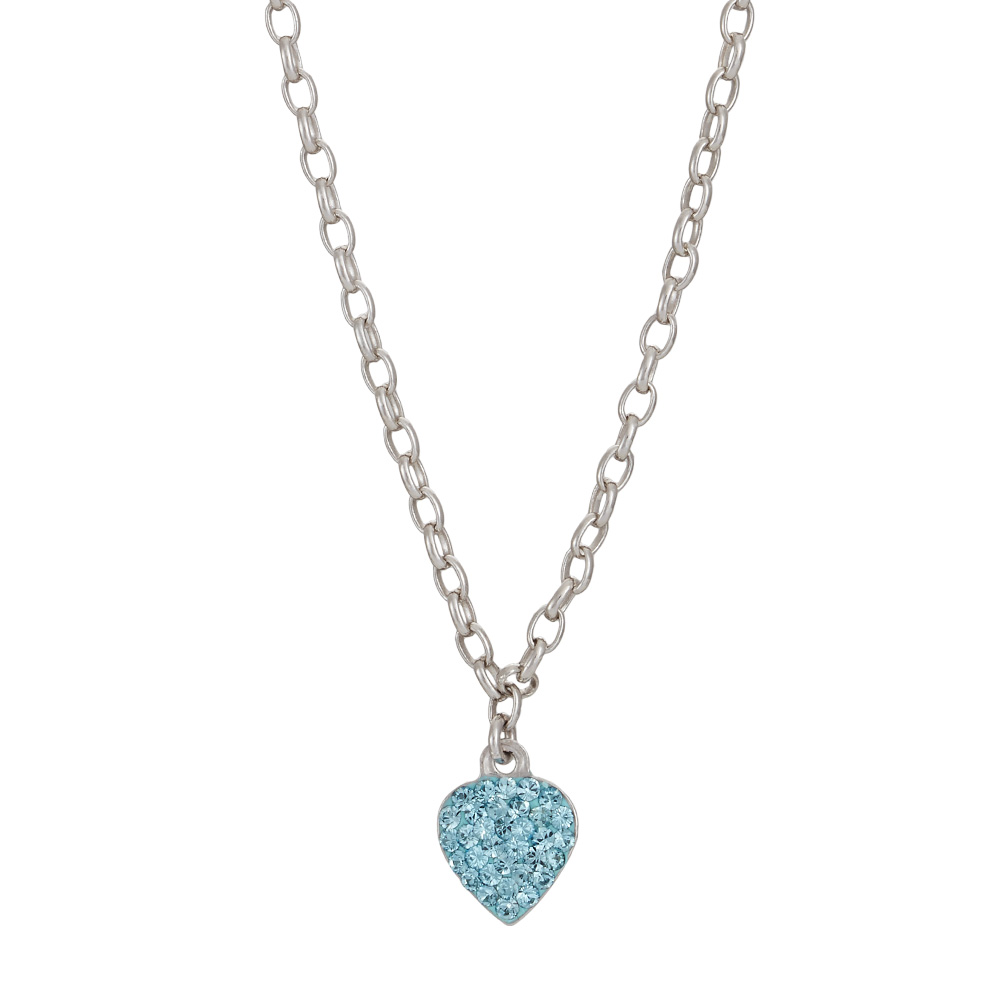 Rhod. sølvhalskæde hjerte m/lysblå cz inkl. kæde