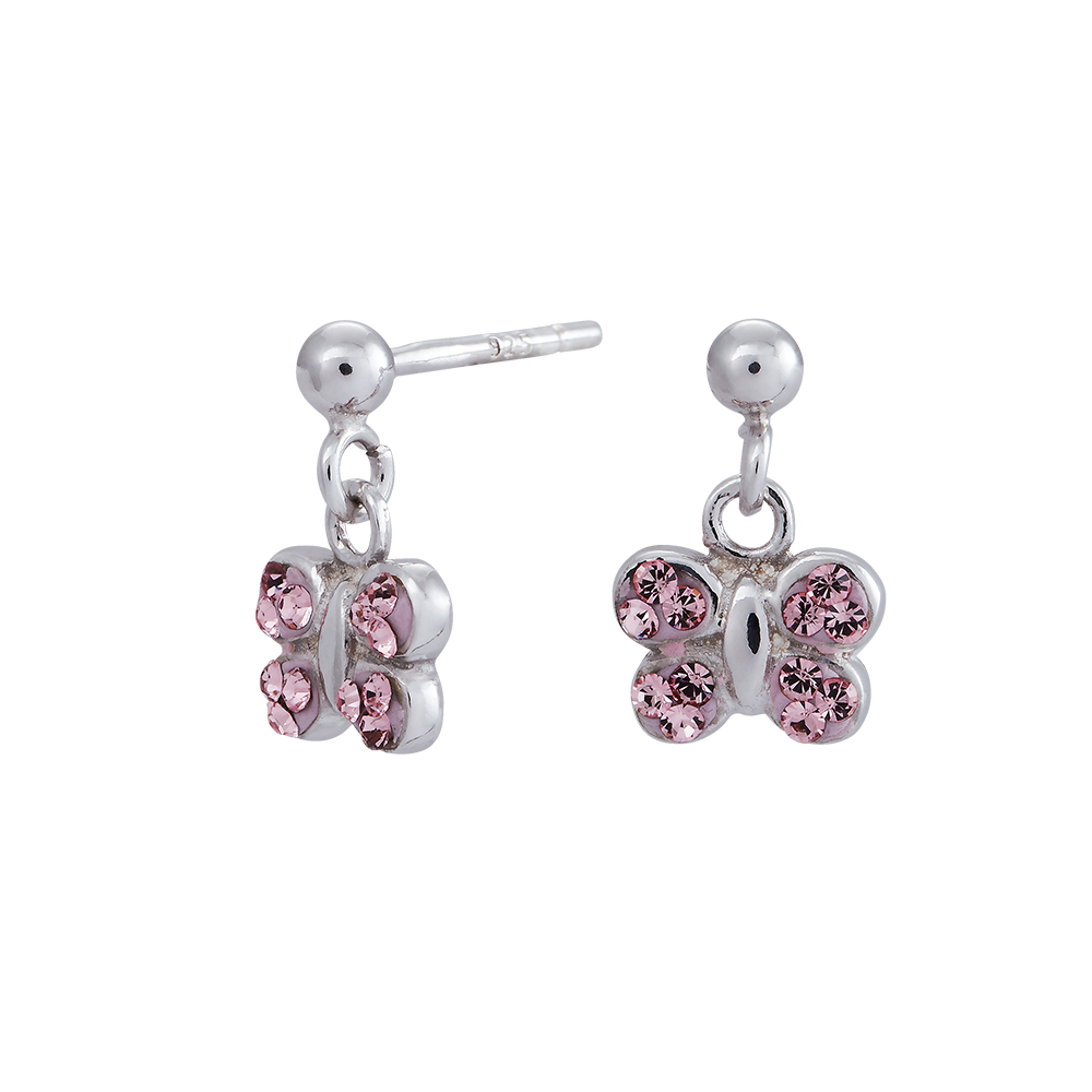 Rhod. sølvørehænger sommerfugl m/pink cz.