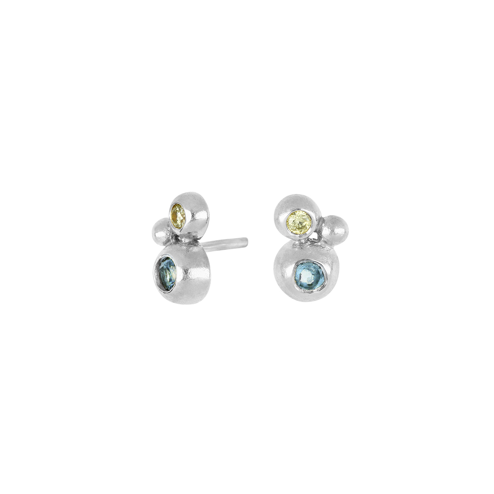 Fine blomsterørestikker i rhodineret sølv med lyseblå CZ