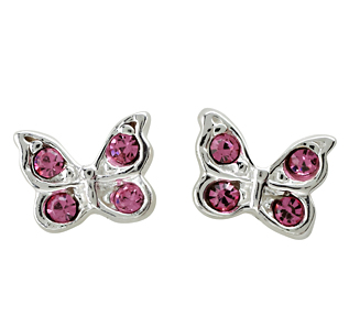 Rhod. sølvørestikker sommerfugl m/lyserød krystal