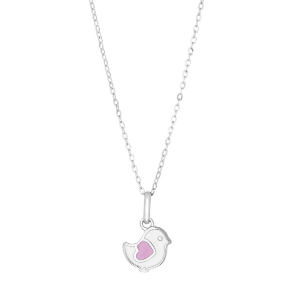 Rhodineret Sølvvedhæng Fugl fra Noa Kids er et charmerende børnesmykke, der kombinerer legende design med kvalitet, du kan stole på. Den fine fugl i 925 sterling sølv har en smuk blank glans, som bevares takket være rhodineringen, og den søde pink hjerte-detalje gør smykket ekstra elskværdigt. Perfekt til både hverdag og særlige øjeblikke – et smykke, barnet vil elske at bære igen og igen.
