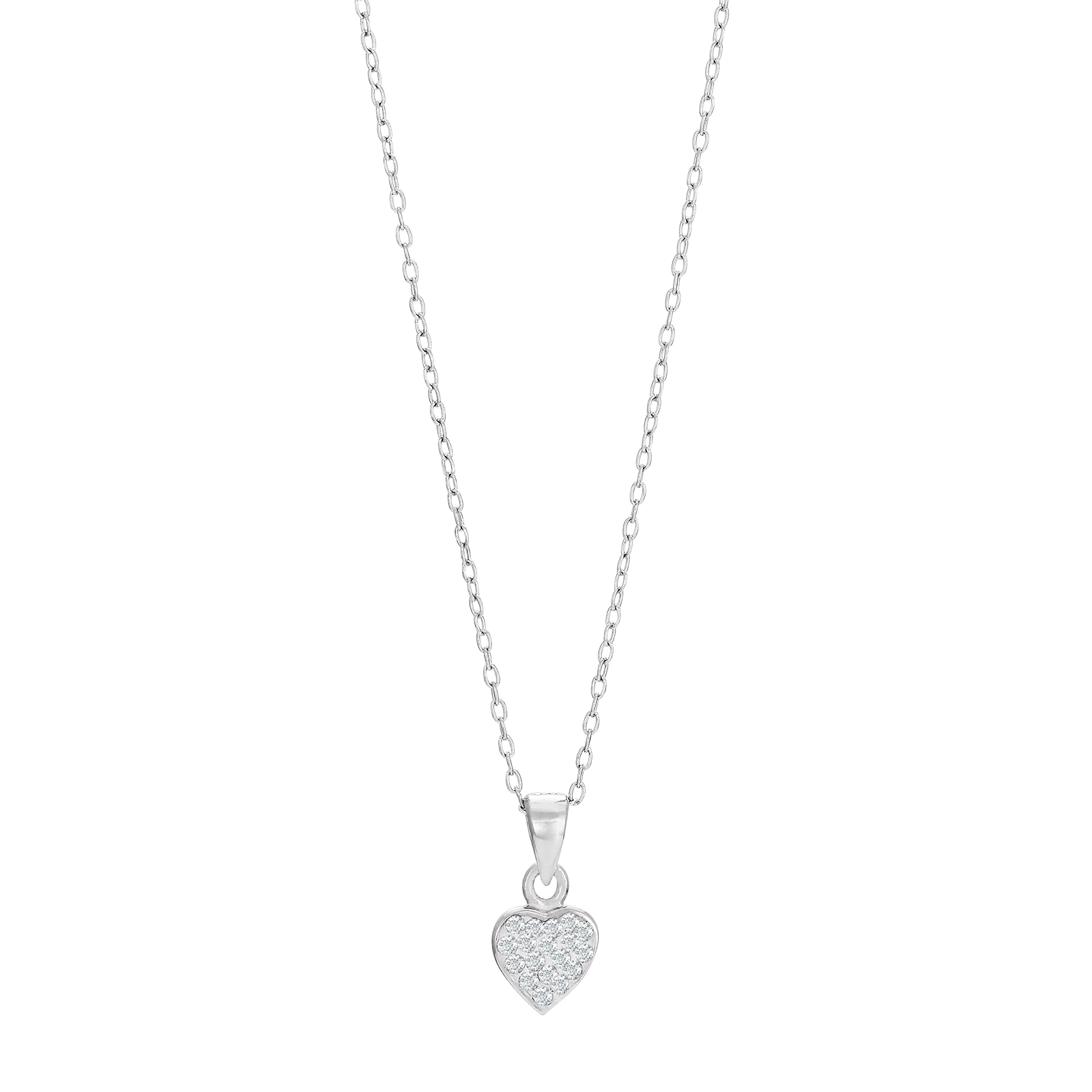Rhod. sølvvedhæng hjerte m/cz inkl. kæde