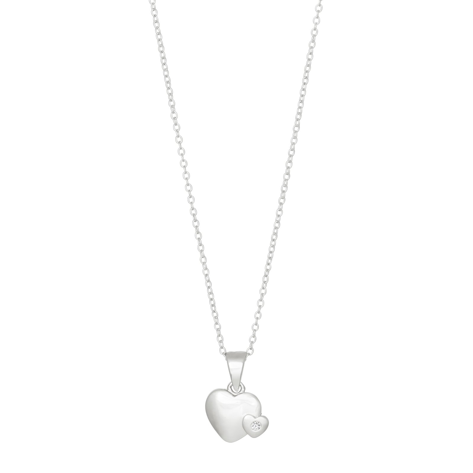 Rhod. sølvvedhæng hjerte m/cz inkl. kæde