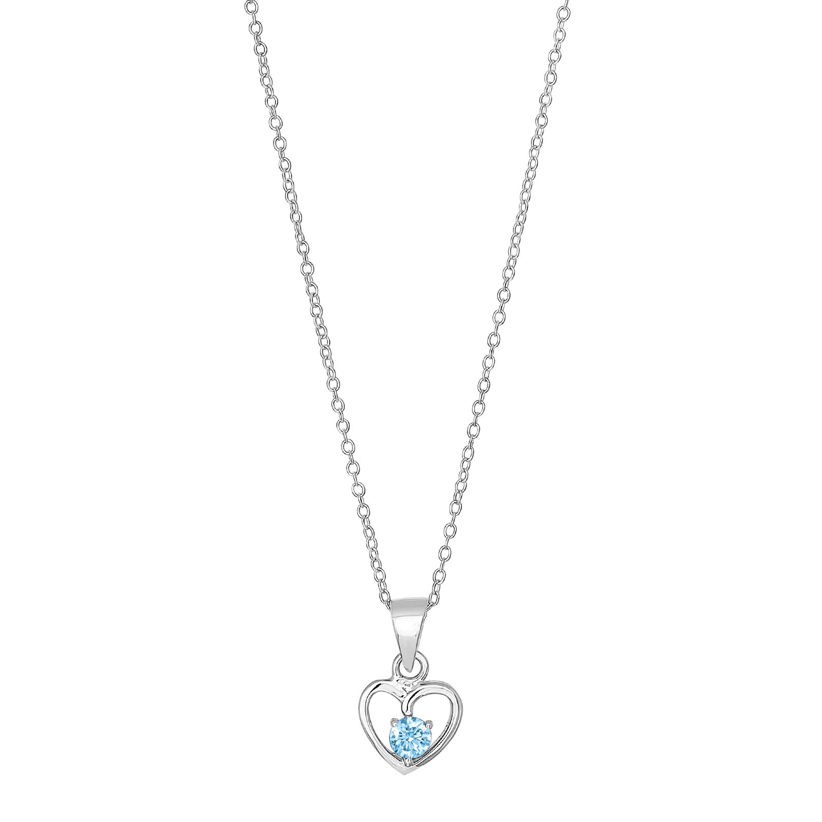 Rhod. sølvvedhæng hjerte m/lyseblå cz inkl. kæde