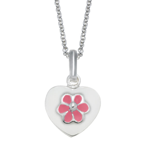 Rhod. sølvvedhæng hjerte m/lyserød blomst inkl. K