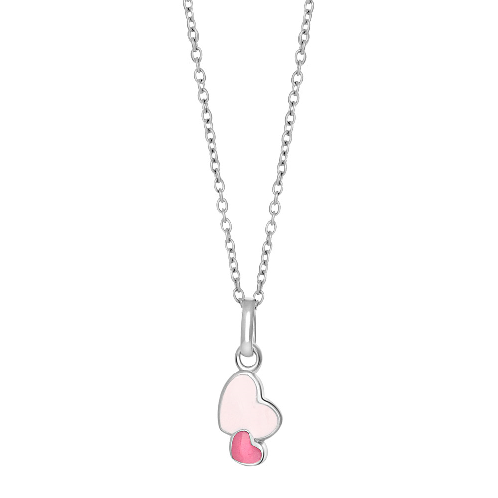 Rhod. sølvvedhæng hjerter m/pink emalje inkl. Kæd