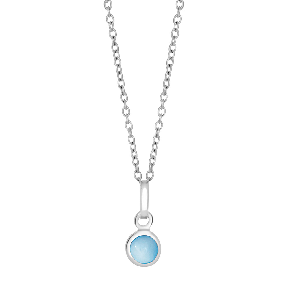 Rhod. sølvvedhæng m/blå perlemor inkl. kæde