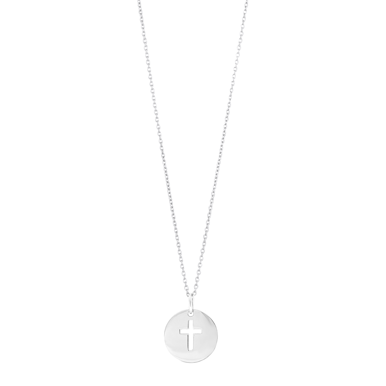 Rhod. sølvvedhæng plade m/kors 12mm inkl. kæde