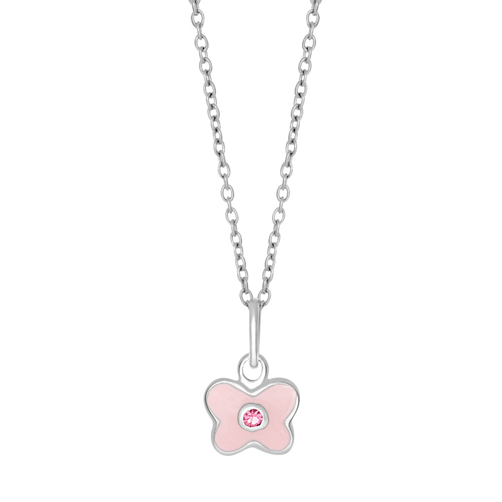 Rhod. sølvvedhæng sommerfugl m/emalje cz inkl kæd