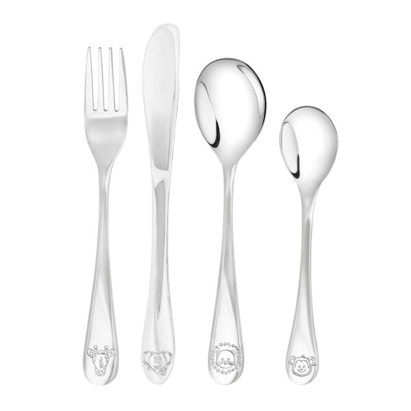 Bestikket er fremstillet i kraftigt rustfrit stål med rundede former, perfekt til små hænder og daglig brug. Det leveres i flot gaveæske og er en oplagt gave til dåb, fødselsdag eller barnets første eget bestik.