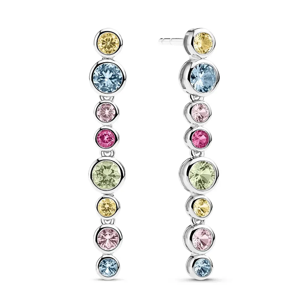 Øreringe lavet af rhodineret 925 sterlingsølv, med en poleret overflade og håndsatte facetslebne flerfarvede zirkonia.