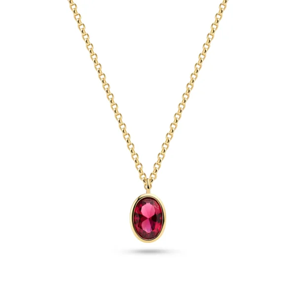 Halskæde lavet af 18 karat forgyldt 925 sterlingsølv, med en poleret overflade og håndsatte facetslebne lyserød zirkonia.