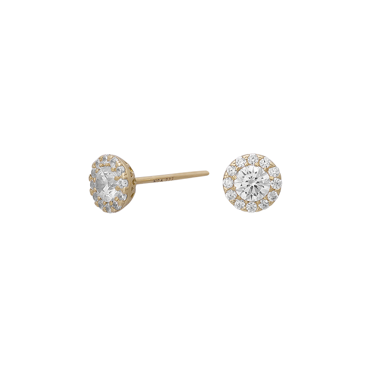 Disse Siersbøl ørestikker i 8 kt guld med klare cubic zirkonia er skabt til dig, der elsker tidløst design med et strejf af luksus. Den runde form og de funklende sten giver et elegant diamant‑look, uden at det bliver prangende. Resultatet er et alsidigt smykke, der nemt følger dig fra hverdag til fest og altid føles rigtigt.