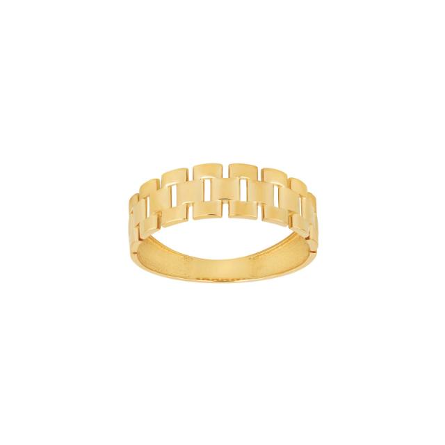 Smuk ring i 8 karat guld med mønster der minder lidt om det klassiske mønster mursten