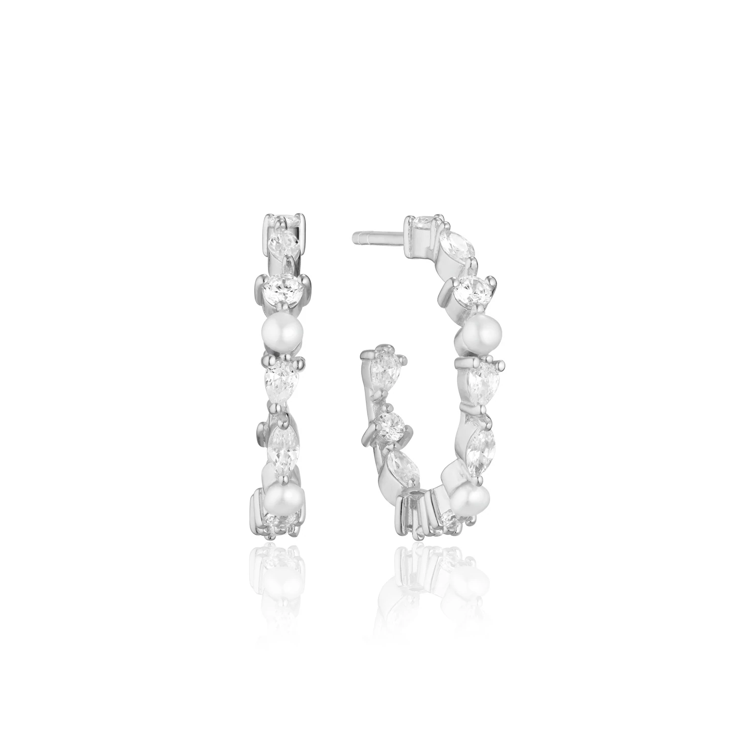 Flotte Adria Creolo Medio øreringe i 925 rhodineret sterlingsølv med  smukke zirkoner og ferskvandsperler fra Sif Jakobs. Disse øreringe er fra den nyeste kollektion fra Sif Jakobs. Tjek vores udvalg på smykkeuret.dk