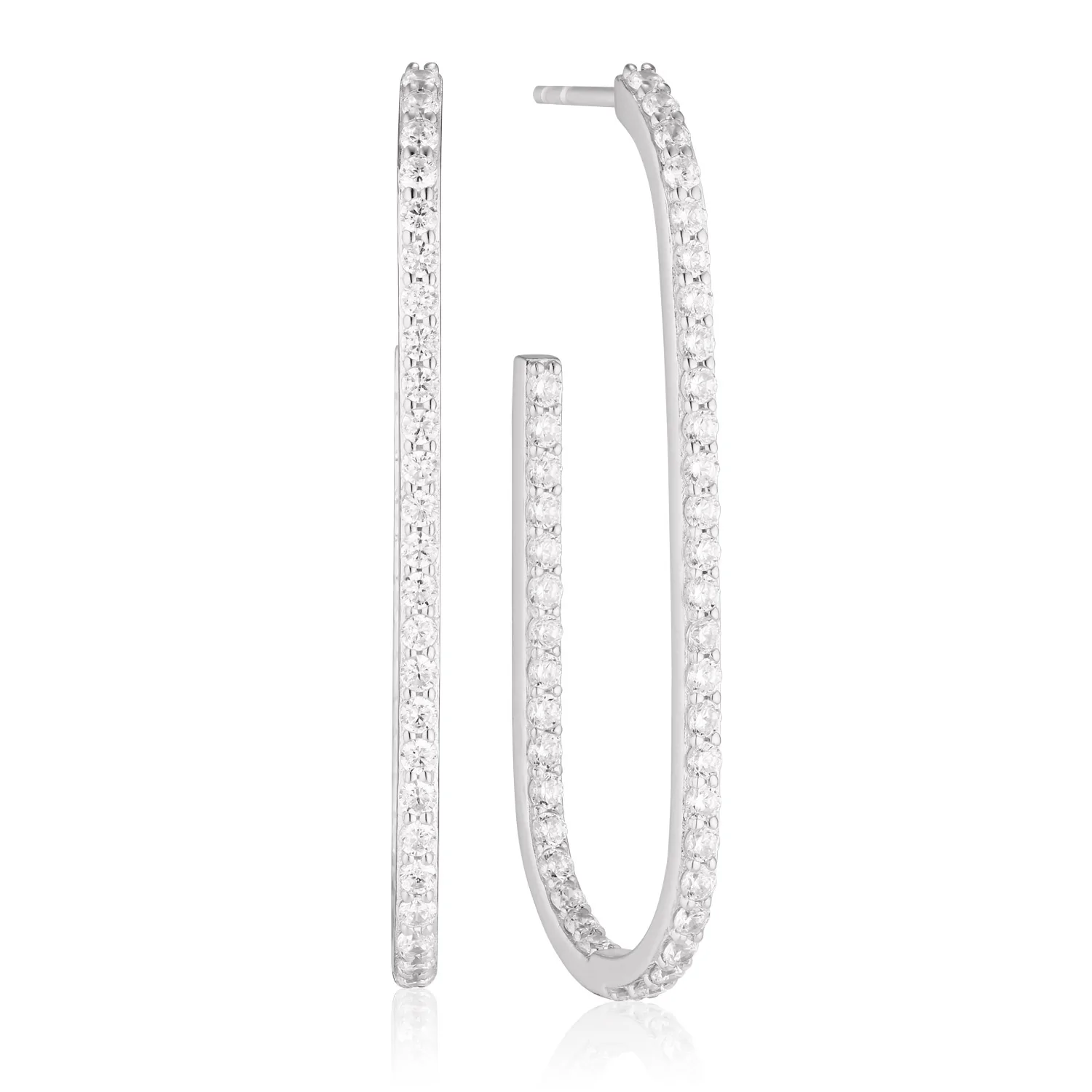 Øreringe i sterlingsølv 925 med blankpoleret overflade og håndsat med facetslebne hvide zirkoner.
