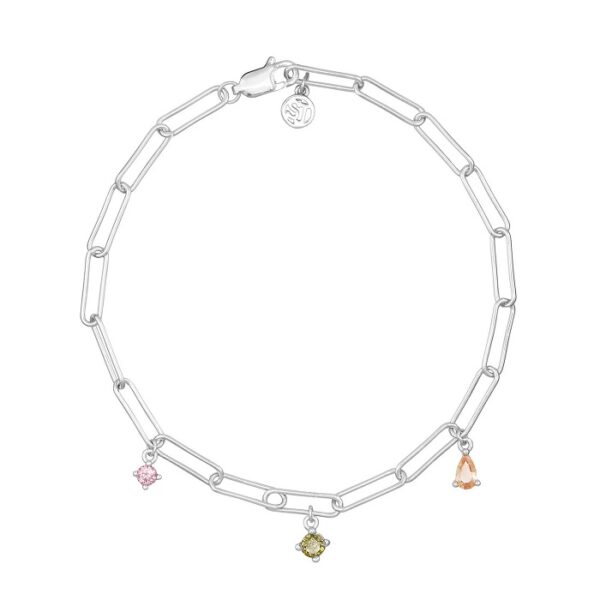 Sif Jakobs Rimini armbåndet er skabt til kvinden, der vil skille sig ud med stil. Den markante paperclip-kæde i blankpoleret 925 sterlingsølv møder nøje håndsatte, multifarvede zirkonia, som fanger lyset ved hver bevægelse. Et moderne luksussmykke, der giver dit outfit et sofistikeret løft – uden at føles tungt.