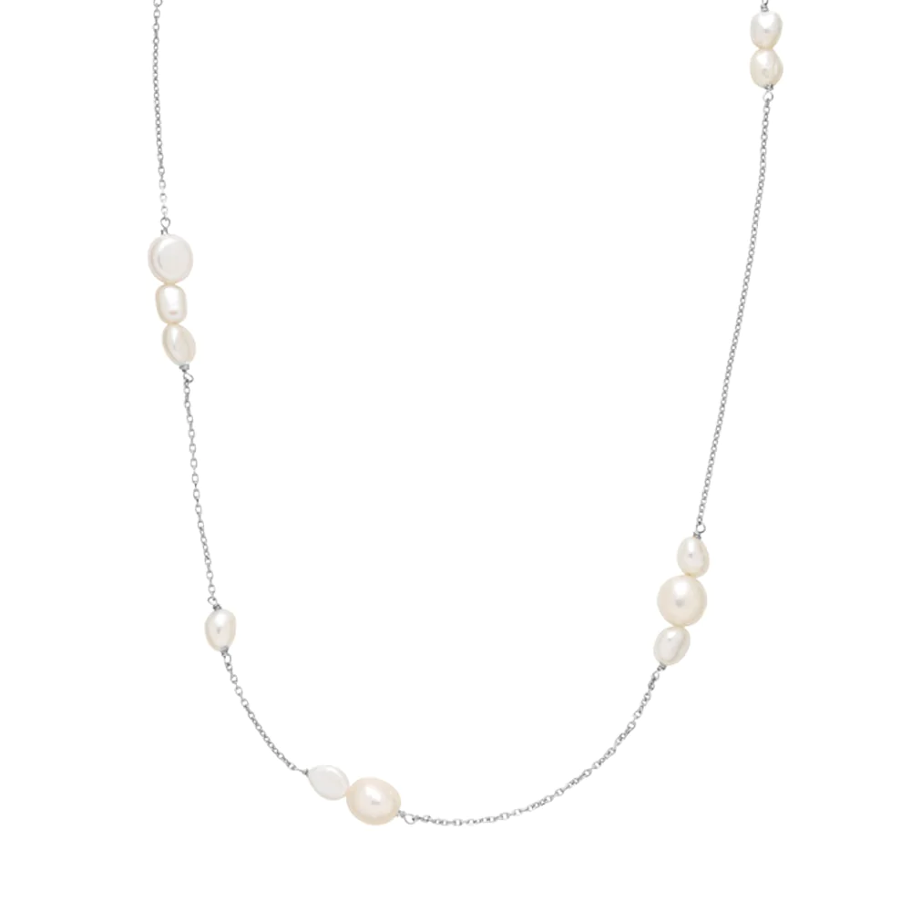 Den smukke Sistie Ella halskæde z2033swswhite er fremstillet i rhodiumbelagt sterlingsølv og er udsmykket med små fine ferskvandsperler. Halskæden har et unikt look, der gør den perfekt til både hverdag og fest. Denne klassiske perlehalskæde er en del af Ella kollektionen, som også består af øreringe og armbånd. Halskæden har en justerbar længde på 38-42 cm.