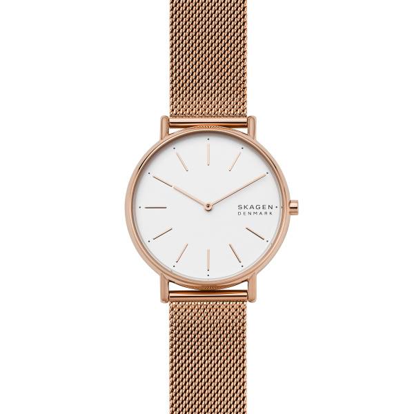 Skagen Signatur SKW2784 er skabt til kvinden, der værdsætter ro, balance og et elegant udtryk. Det rosaguldfarvede stål og den slanke 38 mm kasse giver uret et feminint, men underspillet look, som passer perfekt til både arbejdsdagen og aftenen. Et ur, der føles let, ser eksklusivt ud og aldrig går af mode.