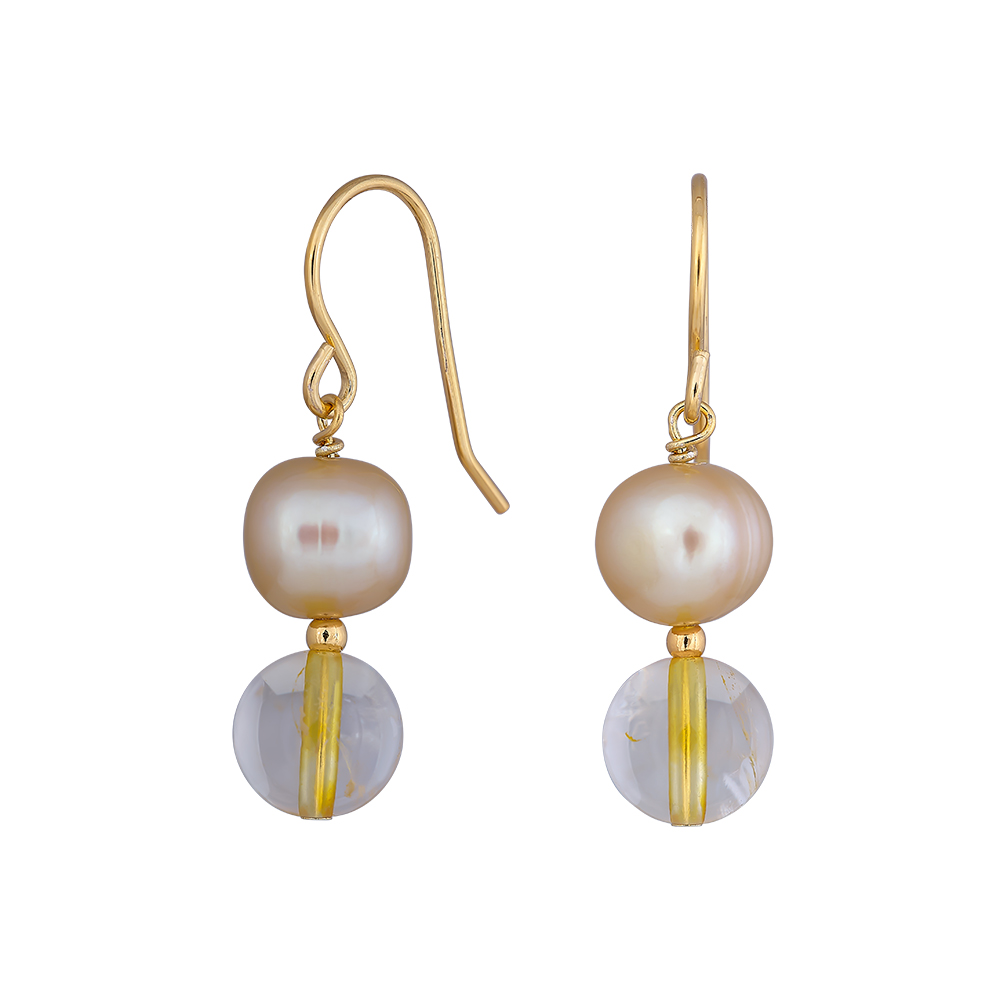 Sølv forg. ørehænger citrin + fvp. perle