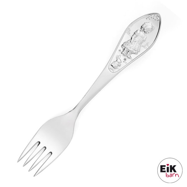 Sølv Gaffel (925s) Grete er mere end blot en børnegaffel – den er en tidløs gave fyldt med eventyrlig charme. Fremstillet i ægte 925 sterling sølv og prydet med det fine Grete-motiv fra “Hans og Grete”, forener den klassisk design med varm symbolik. Den perfekte størrelse på ca. 14,5 cm gør den behagelig for små hænder, men skabt til at holde hele livet.