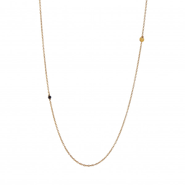 Stine A- Halskæde en lille sort spinel og en lille mønt