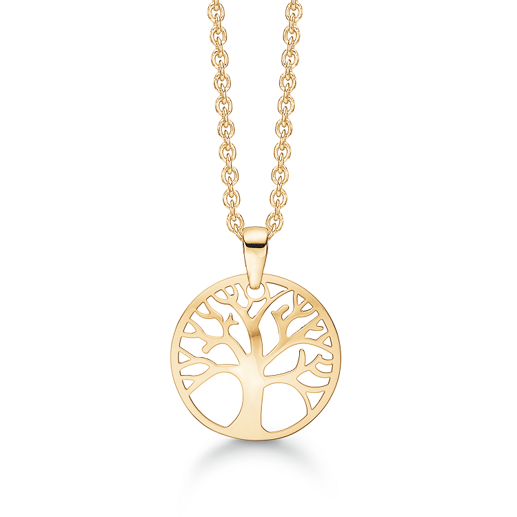 Smuk halskæde i 8 kt. ægte guld med Livets Træ i cirkel